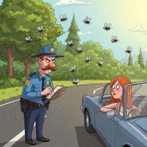 It’s the middle of summer and a Highway Patrolman pulls over a motorist for speeding. While he’s writing the ticket, flies keep buzzing around his head, annoying…