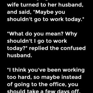 While still lying in bed, the wife turned to her husband, and said, “Maybe you shouldn’t go to work today.” “What do you mean? Why shouldn’t I…