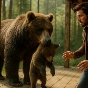I stepped outside and saw a huge bear standing on the porch, holding a cub in its jaws: As I stared at them in shock, the mother bear gently set the cub down on the ground — and then did something completely unexpected