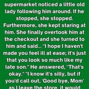 A young man shopping in a supermarket noticed a little old lady following him around. If he stopped, she stopped. Furthermore, she kept staring at him. Eventually,…