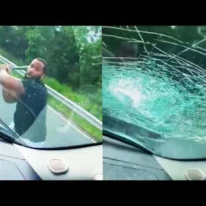 In a shocking incident that has left many in disbelief, an angry driver was caught on camera smashing the windshield of a car driven by a father…