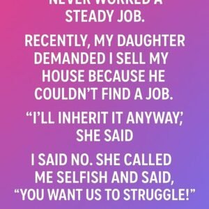My son-in-law never worked a steady job. Recently, my daughter demanded I sell my house because he couldn’t find a job. “I’ll inherit it anyway,” she said….