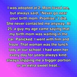 I was adopted at 2. Mom loved me, but always said, “Never go near your birth mom. Promise.” I did. She never contacted me anyway. At 25,…