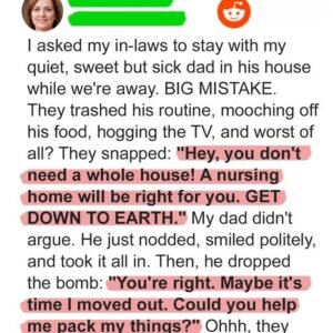 I asked my in-laws to stay with my quiet, gentle dad while we were away on a short trip. He wasn’t seriously ill, just needed someone nearby…