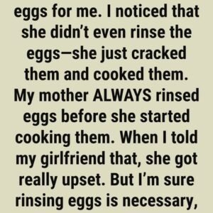 My girlfriend made fried eggs for me. I noticed that she didn’t even rinse the eggs—she just cracked them and cooked them. My mother ALWAYS rinsed eggs…