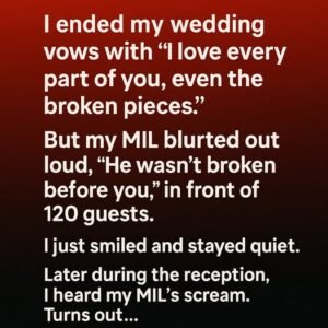 I ended my wedding vows with, “I love every part of you, even the pieces shaped by life.” Before the guests could applaud, my mother-in-law suddenly blurted,…