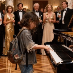 The ballroom shimmered beneath tiers of crystal chandeliers, their reflections scattered across marble floors and silk gowns. Laughter blended with the gentle rise and fall of a…
