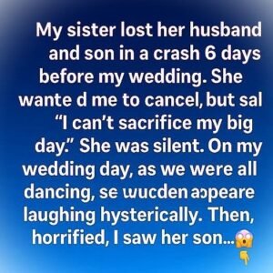Six days before my wedding, my sister lost her husband and son in a tragic crash. Broken and overwhelmed, she asked me to cancel the wedding. But…