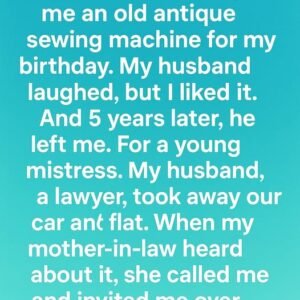 My mother-in-law gave me an old antique sewing machine for my birthday. My husband laughed, but I liked it. And 5 years later, he left me. For…