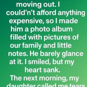 My grandson was moving out, and though I wished I could give him something grand, my budget was tight. Instead, I created a heartfelt photo album filled…