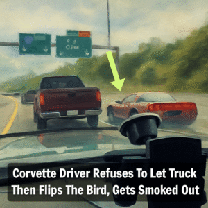 Corvette Driver Tries to Block Truck — Ends Up Covered in Black Smoke