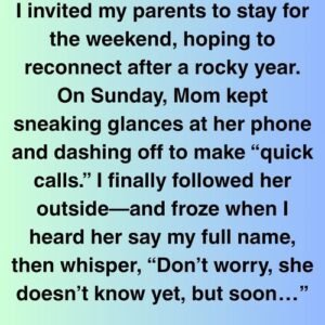 She didn’t hear me. She paced near the back gate, coat open, phone pressed close. I backed away, heart pounding. Were they planning something—an intervention, my finances,…