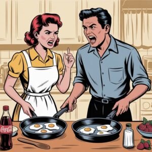 A wife was in the middle of preparing breakfast, frying eggs for her husband. Suddenly, he stormed into the kitchen, panic written all over his face. “Be…