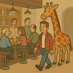 A guy walks into a bar with a giraffe. They sit down on two stools at the front and the guy says to the barman ” two…