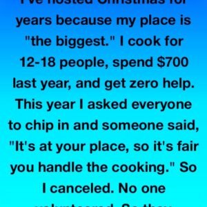 So this year, I asked everyone to chip in. The response? “It’s at your place, so it’s fair you handle the cooking.” I canceled. No one volunteered…
