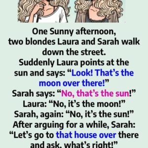 One Sunny afternoon, two blondes Laura and Sarah walk down the street. Suddenly Laura points at the sun and says: “Look! That’s the moon over there!” Sarah…