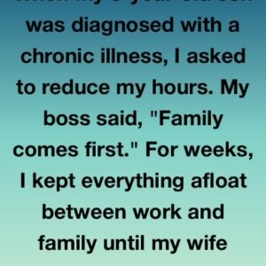 When my 3-year-old son was diagnosed with a chronic illness, I asked to reduce my hours. My boss said, “Family comes first.” For weeks, I kept everything…