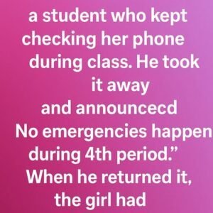 Our teacher mocked a student who kept checking her phone during class. He took it away and announced, “No emergencies happen during 4th period.” When he returned…