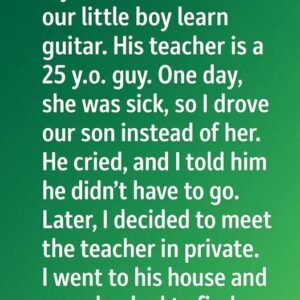 My wife insisted that our little boy learn guitar. His teacher is a 25 y.o. guy. One day, she was sick, so I drove our son instead…