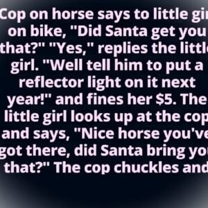 A police officer on horseback stops a little girl riding her bike. He smiles politely and asks, “Did Santa bring you that nice bike?” “Yes,” she replies…
