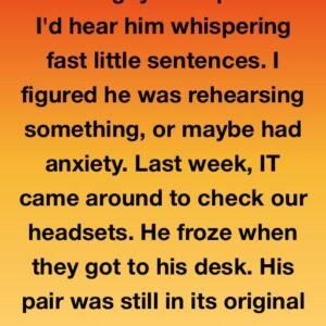 The new guy was quiet. But I’d hear him whispering fast little sentences. I figured he was rehearsing something, or maybe had anxiety. Last week, IT came…