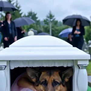 A German Shepherd refused to leave a little girl’s coffin—what happened next stunned everyone.The funeral