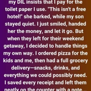Whenever I babysit my grandkids, my daughter-in-law insists that I pay for the toilet paper I use. “This isn’t a free hotel!” she snapped once, while my…