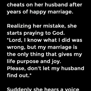 A woman has an affair and cheats on her husband after years of happy marriage. Realizing her mistake, she starts praying to God. “Lord, I know what…