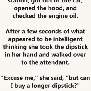 After a few seconds of what appeared to be intelligent thinking she took the dipstick in her hand and walked over to the attendant. “Excuse me,” she…