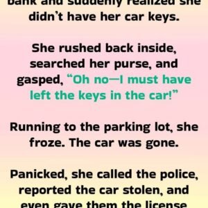 A woman walked out of the bank and suddenly realized she didn’t have her car keys. She rushed back inside, searched her purse, and gasped, “Oh no—I…