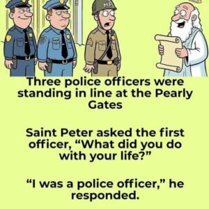 Three police officers were standing in line at the Pearly Gates
