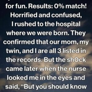 My twin and I took a DNA test for fun. Results: 0% match! Horrified and confused, I rushed to the hospital where we were born, hoping for…