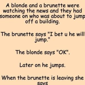 A blonde and a brunette were watching the news and they had someone on who was about to jump off a building. The brunette says “I bet…