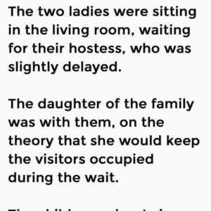 The two ladies were sitting in the living room, waiting for their hostess, who was slightly delayed. The daughter of the family was with them, on the…