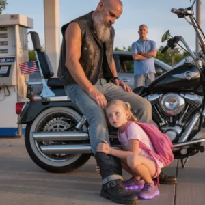 The night a seven-year-old slipped a candy wrapper into a biker’s boot and turned a quiet highway gas station into a ticking rescue mission