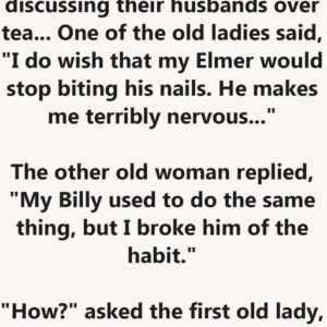 Two elderly ladies were discussing their husbands over tea… One of the old ladies said, “I do wish that my Elmer would stop biting his nails. He…