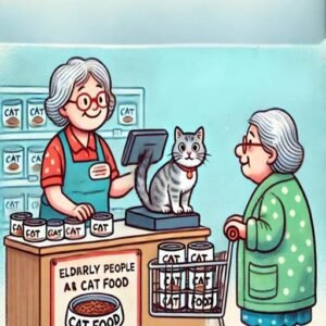 A little old lady went to the grocery store to buy cat food. She picked up four cans and headed to the checkout counter. The cashier looked…