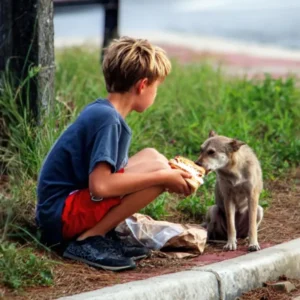My Son Shared Half His Lunch with a Stray Dog Every Day – Until a Red SUV Stopped Beside Him