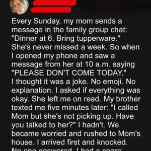Every Sunday, my mom hosted dinner—rain or shine. Ever since Dad passed three years ago, those meals had become our family’s lifeline. So when she texted, “Please…