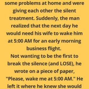 A man and his wife were having some problems at home and were giving each other the silent treatment. Suddenly, the man realized that the next day…