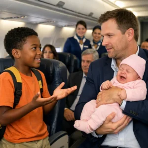 A billionaire’s baby kept crying on the plane—until a destitute black boy did the unthinkable…
