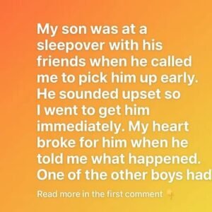 My son was at a sleepover with his friends when he called me to pick him up early. He sounded upset so I went to get him…