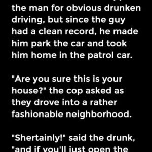 The Policeman had stopped the man for obvious drunken driving, but since the guy had a clean record, he made him park the car and took him…