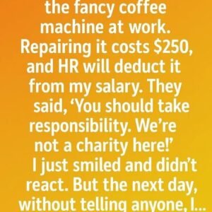 I accidentally broke the fancy coffee machine at work, and HR immediately informed me they would deduct the $250 repair cost from my salary. Their tone was…