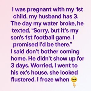 I was pregnant with my 1st child, my husband has 3. The day my water broke, he texted, “Sorry, but it’s my son’s 1st football game. I…