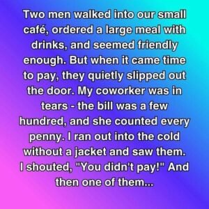 Two men walked into our small café, ordered a large meal with drinks, and seemed friendly enough. But when it came time to pay, they quietly slipped…