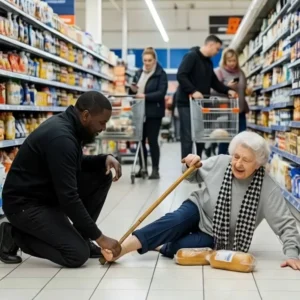 “Don’t Turn, Help!” A 90-Year-Old Woman Collapsed on the Cold Tile Floor, Desperately Trying to Crawl Out of the Supermarket. The Whole Supermarket Passed By As If No One Could Help Her, No One Could Call an Ambulance—Until a Man in Black Knelt Down and Changed Everything