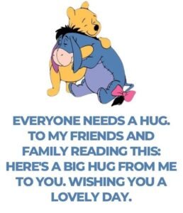 EVERYONE NEEDS A HUG. TO MY FRIENDS AND FAMILY READING THIS: HERE’S A BIG HUG FROM ME TO YOU. WISHING YOU A LOVELY DAY.