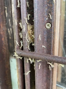After mating, the female mantis deposits this foam-like mass on a sturdy surface — a branch, wall, or even a fencepost. Inside, up to a hundred tiny eggs develop, protected from cold and predators by the hardened shell of the ootheca.