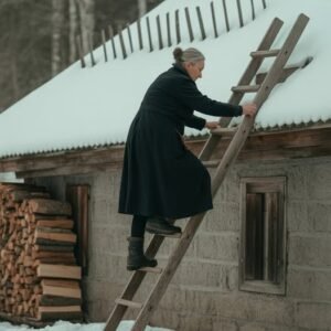 An elderly woman spent the entire summer and autumn seasons working on her roof. Each day she climbed up to hammer sharp wooden stakes into the shingles…